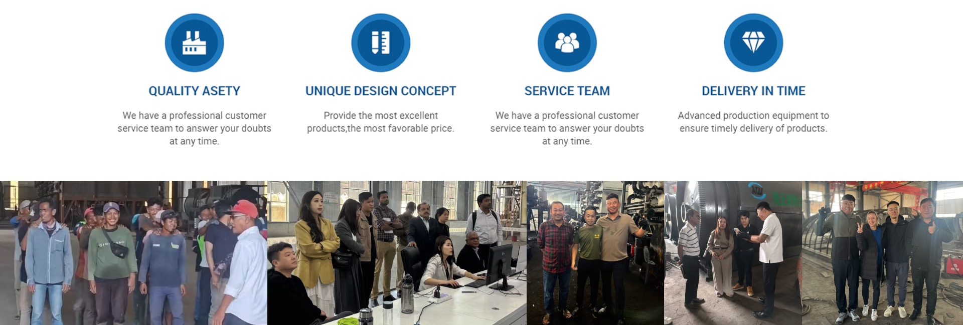 Main business: waste tires, waste plastics, sludge, circuit boards, aluminum-plastic, capacitors, acrylic, leather and other waste resources of continuous, semi-continuous and intermittent cracking equipment, waste oil distillation equipment and cracking equipment supporting dust removal, odor desulfurization, denitrification system, carbon black vacuum collection air transport system. The company has 5 senior technicians, 8 engineers, all kinds of professional and technical personnel more than 70. At present, the upgrading of the main furnace equipment in the field of the industry, the improvement of the feed system, the upgrading of the slag technology, the redesign and production of the burner, including leading the new product air bag derived from the industry, have played a key role in promoting the technology. At present, we have more than 10,000 customers, radiating 32 countries and regions.